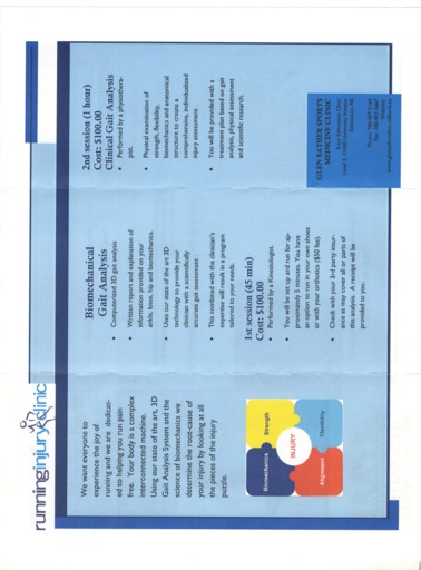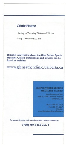 - Four-paged brochure featuring the Glen Sather University of Alberta Sports Medicine Clinic.