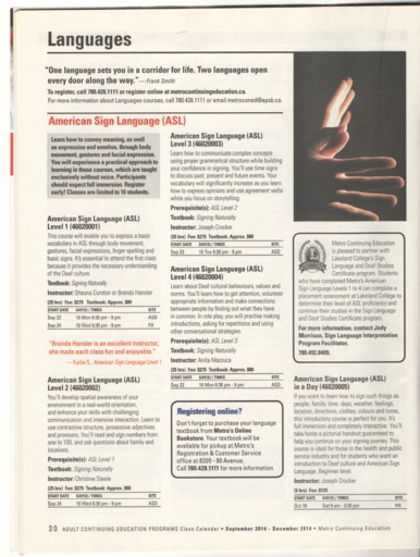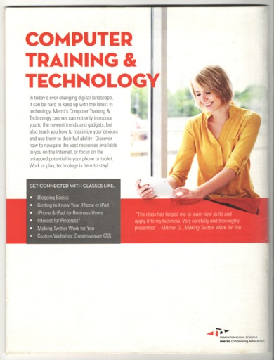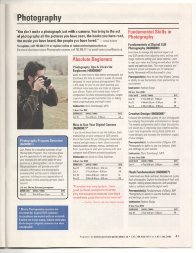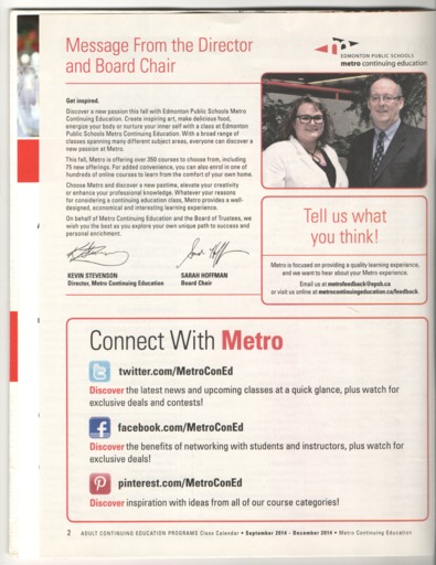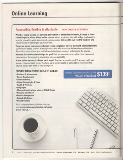 - The Fall 2014 edition of the Metro Continuing Education class calendar.